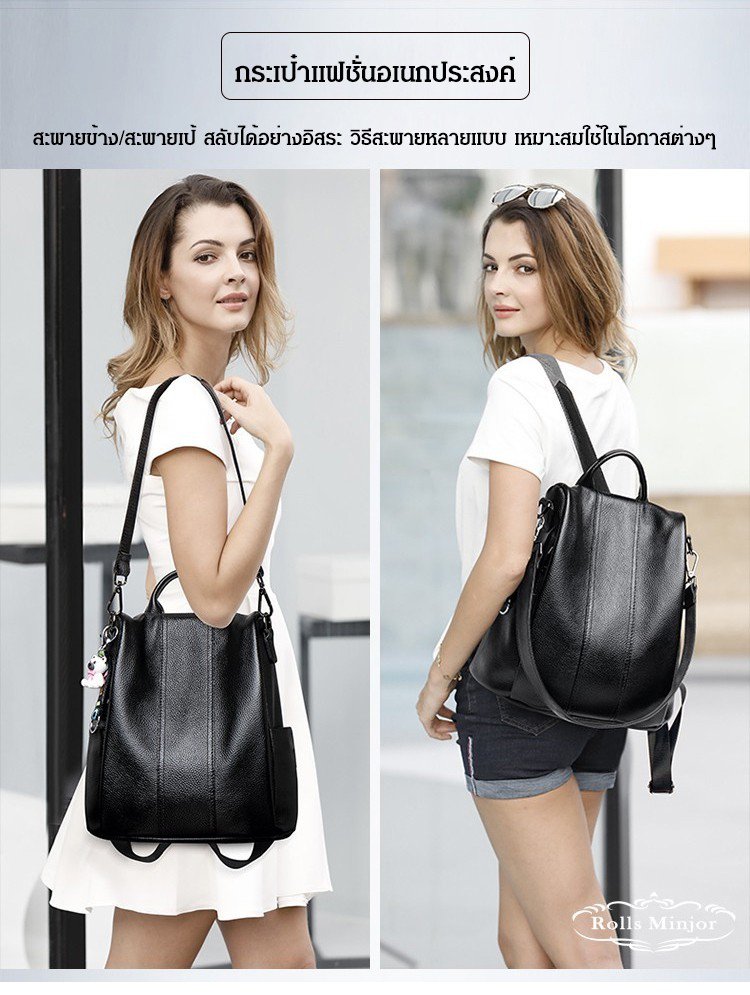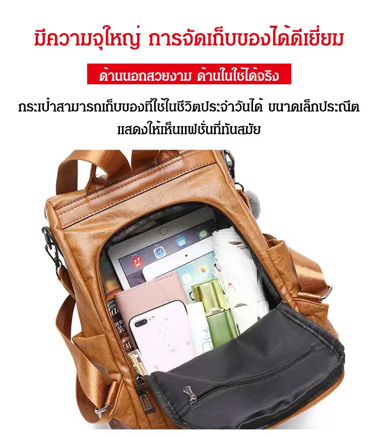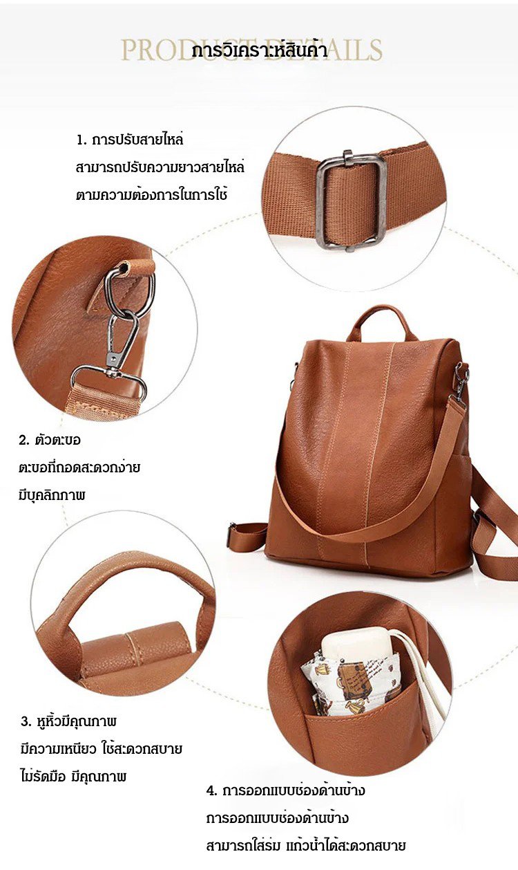 【ซิปซ่อน ป้องกันการโจรกรรม กันฝน 】คัดสรรการใช้หนังวัวคุณภาพสูง เนื้อมีลายละเอียด ประณีต สัมผัสสบาย เป้สะพายหลัง แบบปรับได้ 2แบบ ความจุใหญ่ แมตช์ง่าย