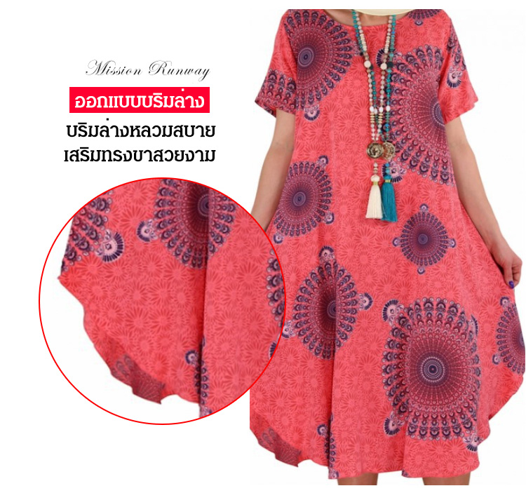ชุดเดรสพิมพ์ลายชายไม่เท่ากัน รุ่นฮิต ผ้าคุณภาพสูง ถนอมผิว ใส่สบาย ทรงหลวม เหมาะกับทุกรูปร่าง ซื้อ 2 ชุด ชุดละเพียง ฿496