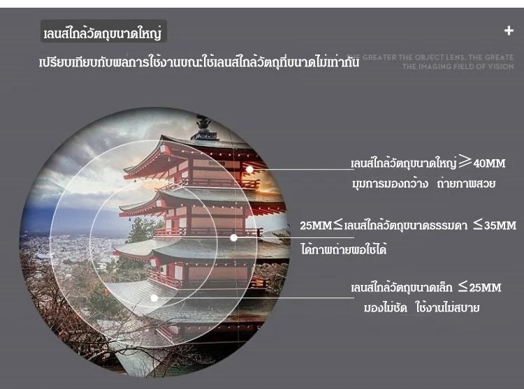 เลนส์รับแสง สามารถมองเห็นถึงดวงจันทร์ สามารถใช้โทรศัพท์ส่องถ่ายรูปได้ ส่องใกล้ไกลรับได้ตามใจชอบ จะดารานักร้องสามารถมองชัดเจน